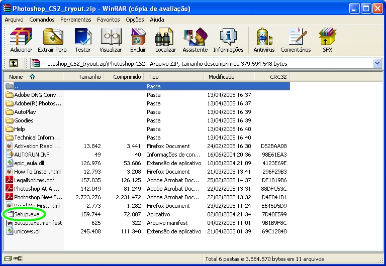 - Clique na programa que está escrito ''Setup.exe'' como mostra Acima.