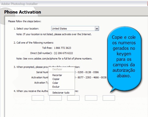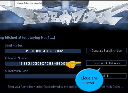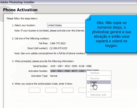 e depois que você copiar a ''Activation number'' cole o Codigo no Serial : veja: