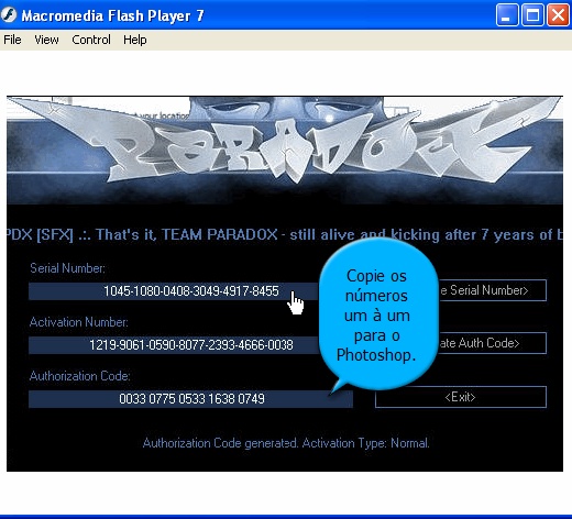irá aparecer essa janela com o numero do SERIAl do seu photoshop e com uma musica ''IRRITANTE'' kkkk